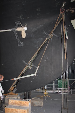 The aim of this refit was: to treat corroded steel along the forefoot and stern post; draw and inspect a number of random keel bolts; remove and inspect the rudder, steering gear, bowsprit and head gear; and inspect the stainless steel fastenings.
