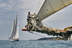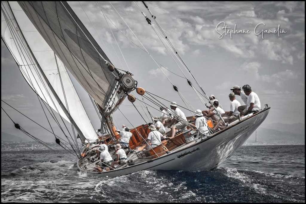 Following our annual May Antibes yard period which included drawing the prop shafts and replacing cutlass bearings; we slipped with freshly antifouled hull into our Voiles de Antibes regatta berth. Antibes again proved challenging with the weather conditions and new rulings from the committee. No excuses but 3 of the 5 in class missed a ruling on a mark thinking we had rounded it correctly only to find at the end of the day to be given a NSC. Cambria had sailied well with line honours but to no avail against Viveka, Oriander, Halloween and Sky. Day two saw a heavy swell from the east and no wind, after lining up for the start Cambria withdrew as it was boat breaking conditions. Shortly after the race was postponed. The race was held later that afternoon, but conditions were not favourable so both Cambria and Halloween DNS. Day 3 was a perfect Cambria day and with full understanding of the nuances of the mark rounding’s, Cambria took line honours and with a dying breeze managed to hold on to 1st on corrected. Day 4 was  a shortened course with a solid 8-10 knots, Cambria happily took line honours but with a constant breeze could not put in enough distance on a short course to hold off the rest of the class finishing 5th on corrected time.