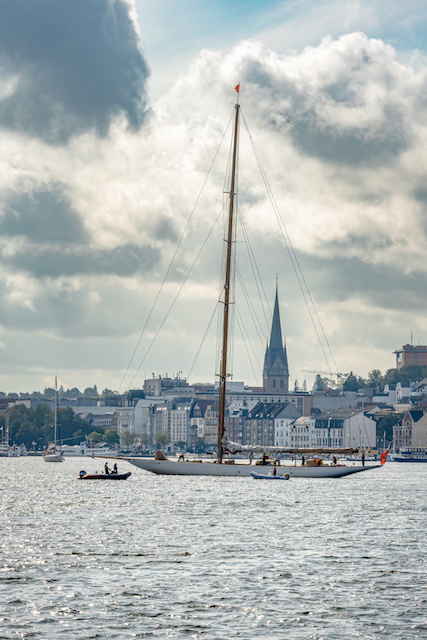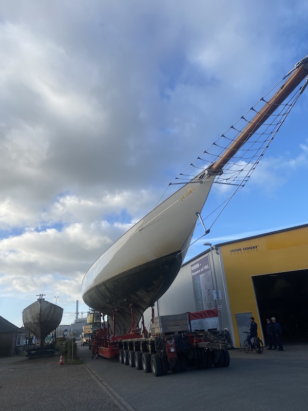 There are always many reasons for deciding on where to intrust Cambria to such a project. It always revolves around people, and I’ve known Oliver Berking for many years. The works that come out of his yard I believe are actually more perfect than they were built originally. Olivers shipwrights and boat builders, led by Joe, Ingo, Chris and Kai are true artisans and masters of the skills, they also love what they do! Dave and I visited the yard in June of 23 to see the facilities. The shed is ideal, climate/humidity controlled with the engineering and cabinet making facilities in the same building. It was also 30 degrees C outside and glorious, the locals of course told us this was normal and to be expected on our return in September. Oliver also runs a young team of apprentices at different stages of their journey, all bright eyed and desperate for information and skills. The yard was always busy out of ours with individual projects moving ahead. The yard also allowed us to employ some of our old crew to help in keeping costs down and to push on through the weekends. This is an important part of choosing a yard as the crew past and present love the work of maintaining Cambria; they are all proud of the work and being part of the history. The yards in the UK were ruled out due to restrictions on importing Cambria’s teak supply. This had been accumulated over time since the 2014/15 refit and stored in Holland. The perceived downside was the location. I saw this as more of a positive. A beautiful part of the world at the end of a challenging voyage. The opportunity to take Cambria to parts of the world with passion for wooden boats and the art of boat building. A voyage throwing the challenges of the sea on a flat-water racing yacht and having a crew up for the job. Cambria’s mast is too tall for the Kiel Canal, so the only option was extra 1000nm’s over the top.